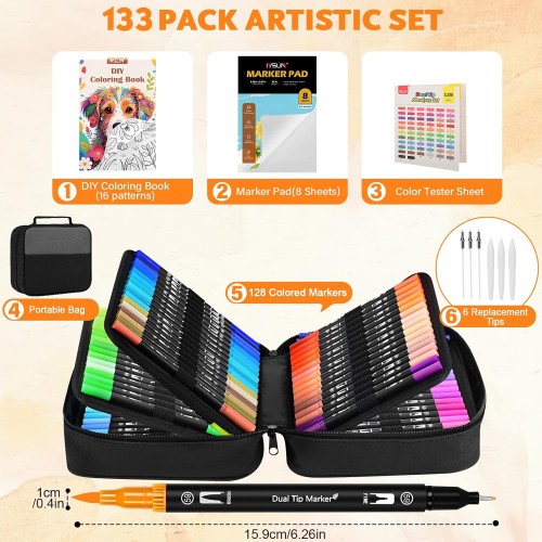 Dual Tip Art Markers, 24 Colors Drawing Markers – Coloring & Sketching for Adults & Kids 8-12