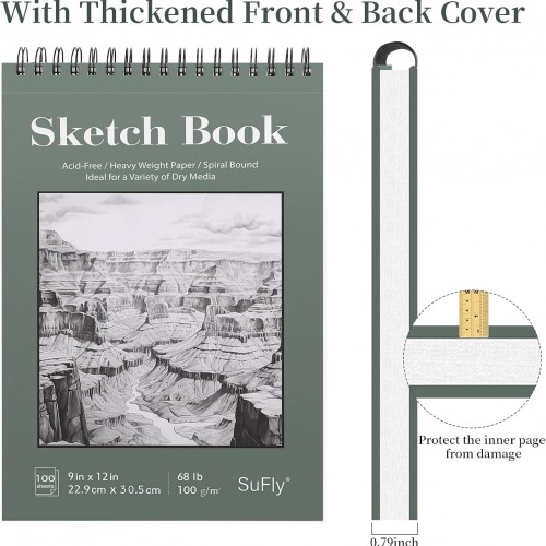 SuFly 9″x12″ Drawing Paper, Pack of 2, 100 Sheets Each, Top Spiral Sketch Pad, 68lb/100gsm, White.