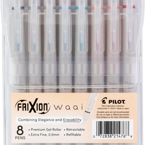 PILOT, FriXion Waai Erasable Gel Pens, 8 Pack Pouch, Extra Fine Point 0.5 mm, Assorted Colors