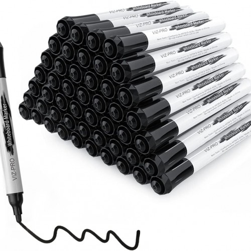 VIZ-PRO Dry Erase Markers, Bulk Pack of 50, Fine Bullet Tip Low-Odor Black Color Whiteboard Pens
