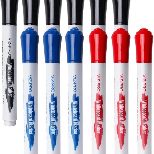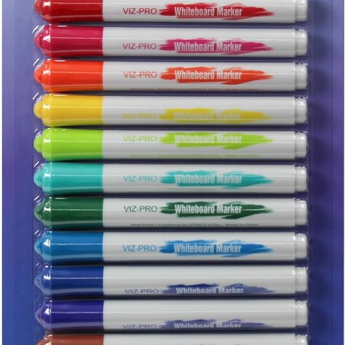 VIZ-PRO Dry Erase Markers, Fine Bullet Tip, 3 Assorted Colors, 12-Count Low-Odor Whiteboard Pens