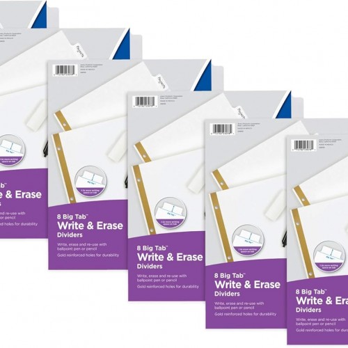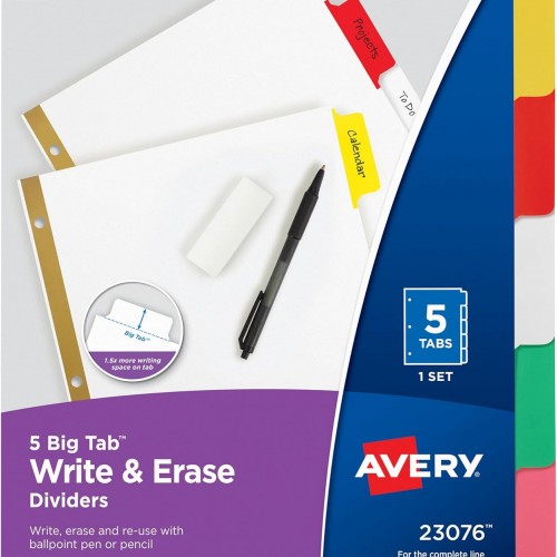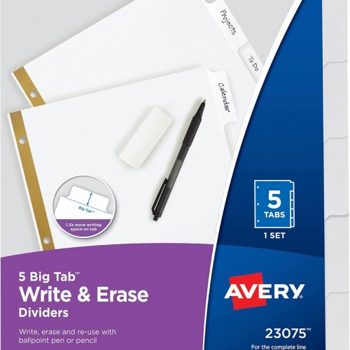 Avery Big Tab Write & Erase Dividers for 3 Ring Binders, 5-Tab Set, 1 Binder Divider Set (23075)