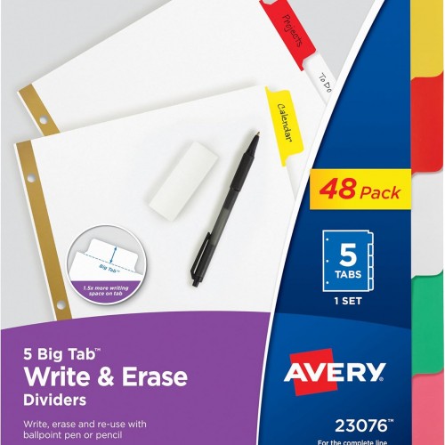 Avery Big Tab Write & Erase Dividers for 3 Ring Binders, 5-Tab Sets, 48 Binder Divider Sets (23075)