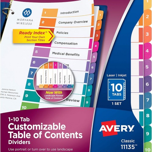 Avery Binder Dividers – 5-Tab Insertable Multicolor Big Tabs for Binders, 6 Sets of Dividers (11109)
