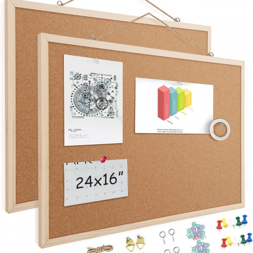 2 Pack 36 x 24 Inch Cork Notice Board Bulletin Message Memo Pin Board, Black Aluminum Frame