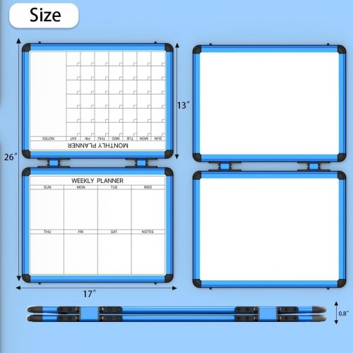 4 Sided Foldable Whiteboards Calendar, 17″x13″ Desktop Whiteboard, Integrating with Monthly and Weekly Planner, Multi-Functional Whiteboard Suitable for Home, School and Office.