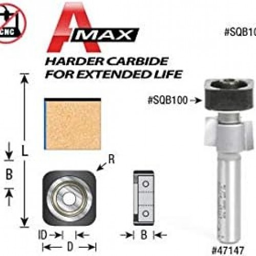 Amana Tool – 47147 Carbide Tipped Laminate Trimmer with Euro Square Bearing 1/2 Dia x 19/6