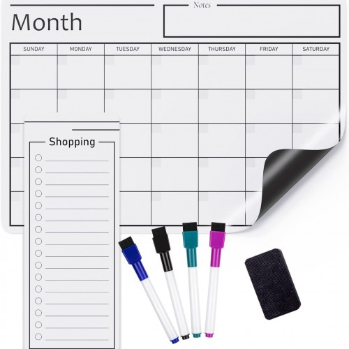 Amazon Basics Magnetic Dry Erase Whiteboard Calendar, 12″ x 17″, Includes 4 Markers And Eraser