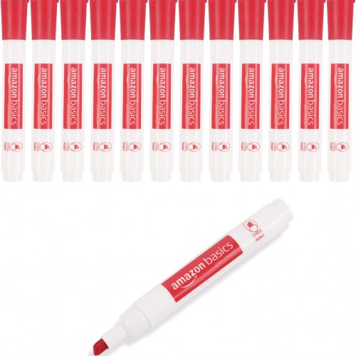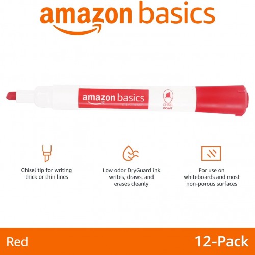 Amazon Basics Dry Erase Markers For Whiteboards, Chisel Tip, Low-Odor, Black, Red, Blue, Pack of 3