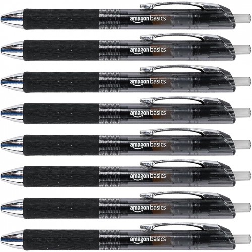 Amazon Basics Gel Pens Fine Point Smooth Writing Pens, Retractable, Black, 0.7mm, 12 Pack