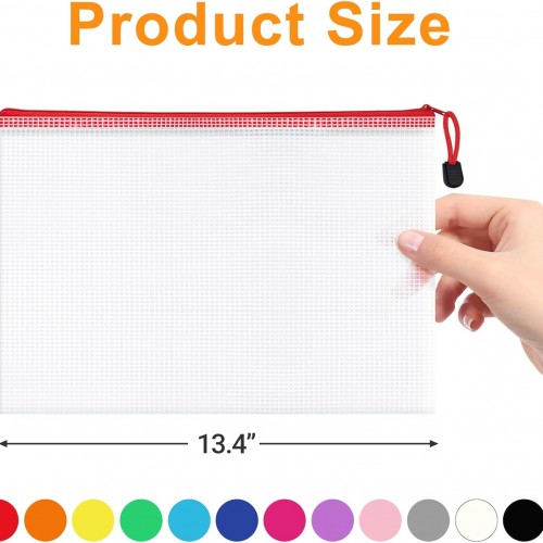 12pcs Mesh Zipper Pouch Bags, Waterproof A4 Letter Size Puzzle Bag for Organizing, Storage, Board Games and Office Supplies, 12 Colors