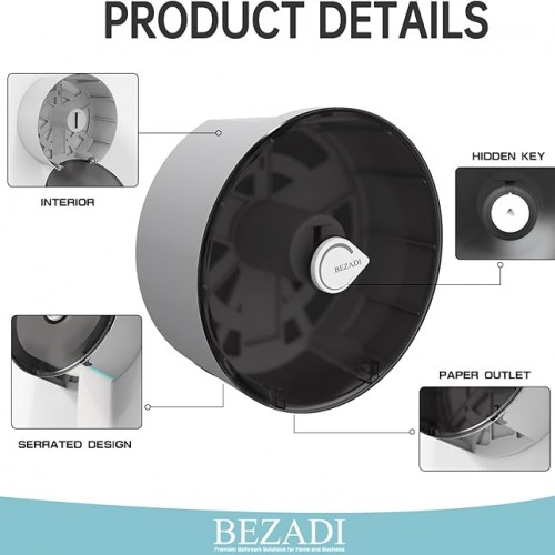 Paper Towel Dispenser Wall Mount, Key Lock Jumbo Roll Toilet Paper Dispenser Commercial Household Large Capacity Paper Holder, Black