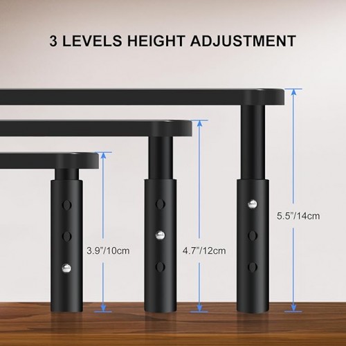 Bracwiser Monitor Stand Riser,3 Level Height Adjustable Desktop monitor stand for Computer, Laptop, Printer, Notebook with Vented Metal Platform 370X235MM 2 Packs,Black
