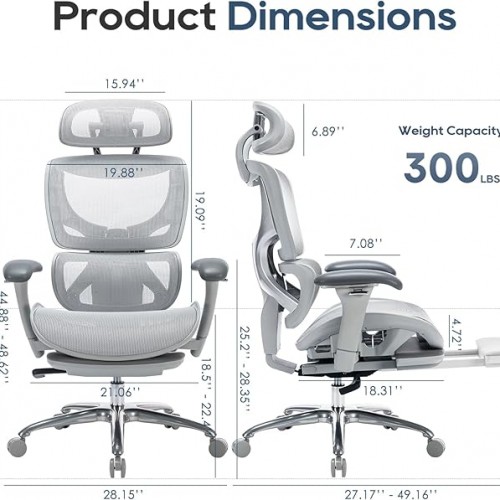 COLAMY Ergonomic Mesh Office Chair, Ergonomic Desk Chair with Footrest, Executive High Back Computer Desk Chair with Lumbar Support, Headrest and Adjustable 3D Arms, Tilt Lock and Lumbar Support-Grey