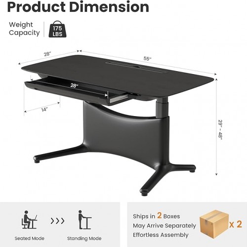 COLAMY Electric Adjustable Standing Desk – 48 x 28 Inch Sit Stand Desk with Drawer & Cable Management, Dual Motor Lift System, Ergonomic Footrest, Home Office Table (Veneer Desktop, Black Oak + Black)
