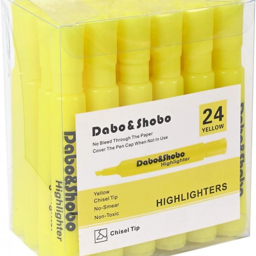 Dabo&Shobo Yellow highlighter, 24 Pack -bright color, chisel tip, for Adults Kids Highlighting in the Home School Office, Tank Style