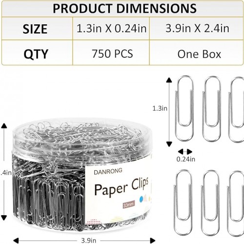 Silver Medium Paper Clips, 750 Pack Paperclips 1.3 Inch (33 mm) Paper Clips Suitable for Office School and Daily Use Also Used for Daily DIY Paper Clip(Silver)