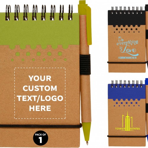 DISCOUNT PROMOS 10 Recyclable Spiral Small Notebooks Pack – 60 Lined Pages – Lime Green