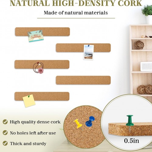 DOLLAR BOSS Bulletin Board Cork Strips for Walls-13×2 Inch, 1/2 Inch Thick, Adhesive Frameless Cork Board for Office, Home & School with 30 Push Pins