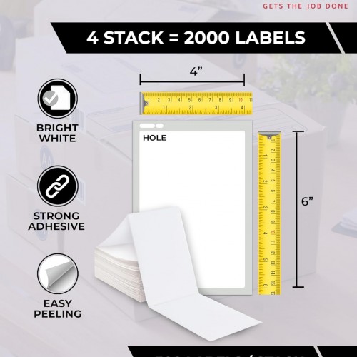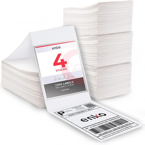enKo Products – 4″ x 6″ Fanfold Direct Thermal Labels – White Shipping Labels, Perforated, Permanent Adhesive for Rollo, Zebra Printers (4 Stack, 2000 Labels) 500 Labels/Stack – Commercial Grade