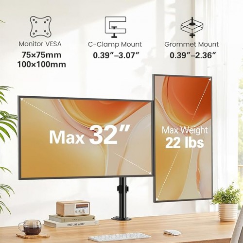 ErGear Dual Monitor Stand, Heavy-Duty Monitor Mount for 17″–32″ Monitors, Flexible Arms with Easy Dual-Monitor Alignment, Sturdy Stepped Arm Design for Superior Support, Supports 22 lbs per Arm