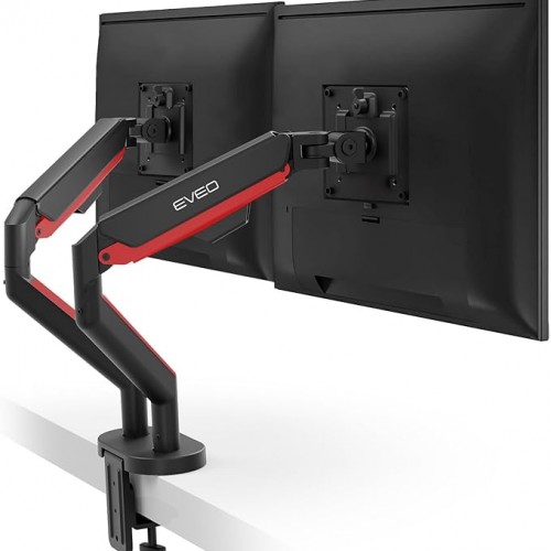 EVEO Premium Dual Monitor Mount 14″-35” Dual Monitor Arm VESA Bracket Adjustable Height Gas Spring Dual Monitor Stand, Screen Full Motion Dual Monitor Arm-Computer Monitor Stand for 2 Screens – Red