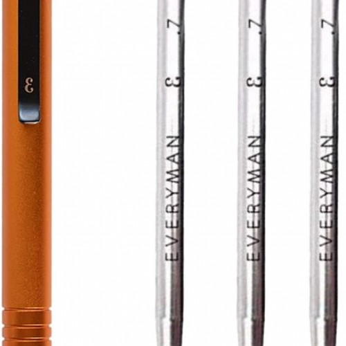 Everyman Taipan Orange Grafton Pen & Ink Bundle, Premium EDC Luxury Writing Utensil with Extra 3-pack of Black Gel Refills (.7mm), Pen with Pocket Clip, Luxury Metal Writing, Gift for Office