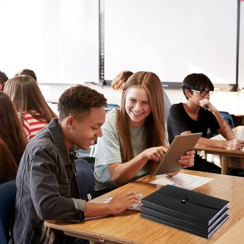 7 Pocket Expanding File Folder with Tab Inserts, Accordian File Organizer Document Receipt Organizer, Accordion Folder File Keeper A4 Letter Size, for School Home Office, Black