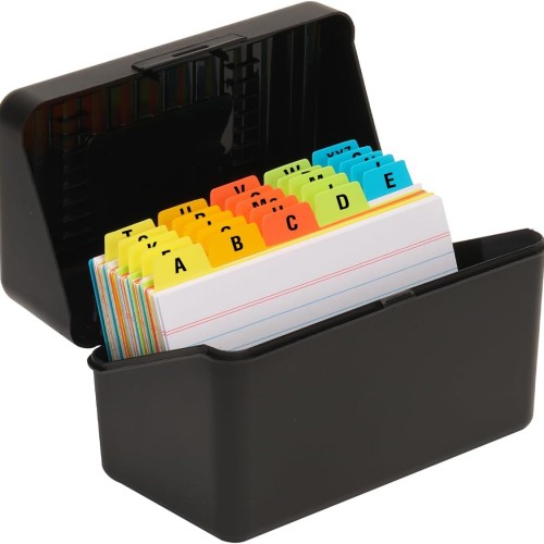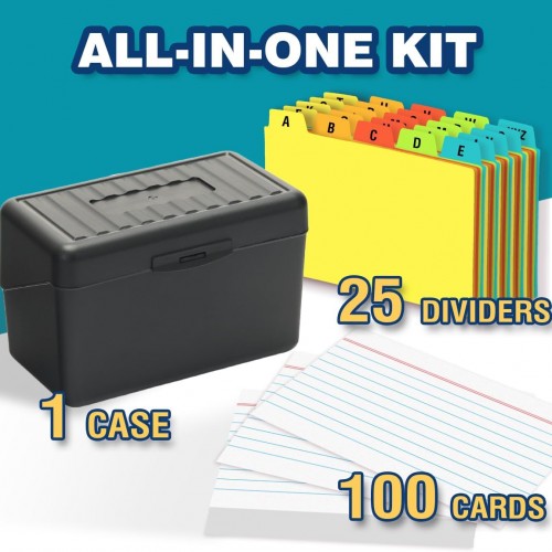 H4D 3×5 Index Card Holder with 100 Heavyweight Ruled Index Cards and 25 Plastic Dividers, Black