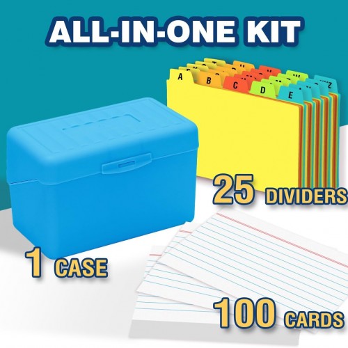 H4D 3×5 Index Card Holder with 100 Heavyweight Ruled Index Cards and 25 Plastic Dividers, Blue