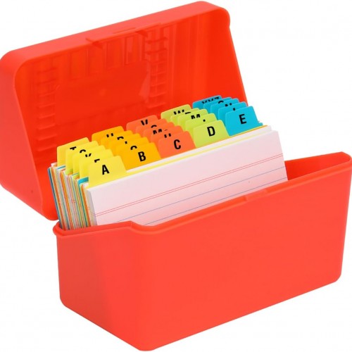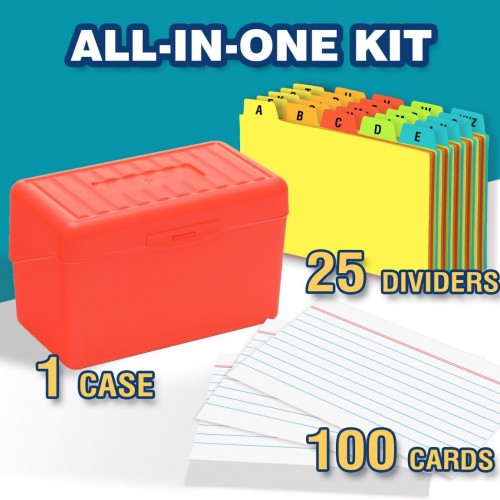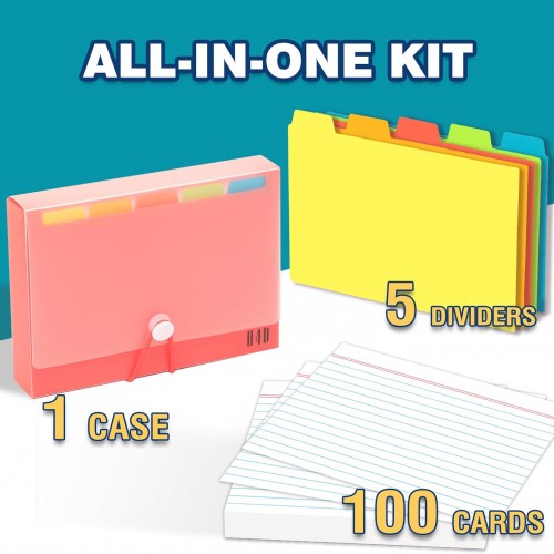 H4D 3×5 Index Card Holder with 100 Heavyweight Ruled Index Cards and 25 Plastic Dividers, Red