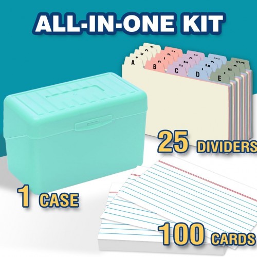 H4D 3×5 Index Card Holder with 100 Heavyweight Ruled Index Cards and 25 Plastic Dividers, Teal
