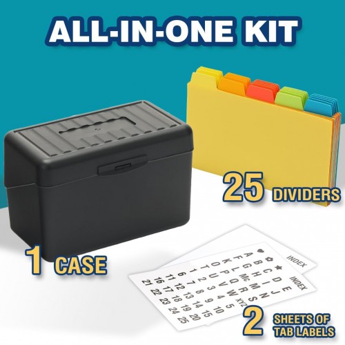 H4D Index Card Holder 3×5 Inches with 25 Plastic Dividers, Black