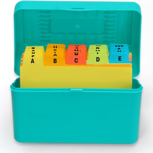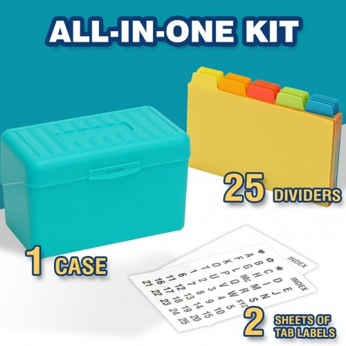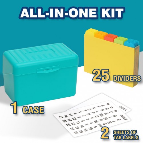 H4D Index Card Holder 3×5 Inches with 25 Plastic Dividers, Teal