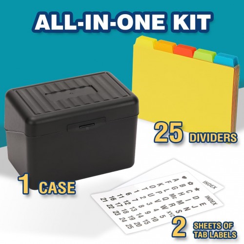 H4D Index Card Holder 4×6 Inches with 25 Plastic Dividers, Black