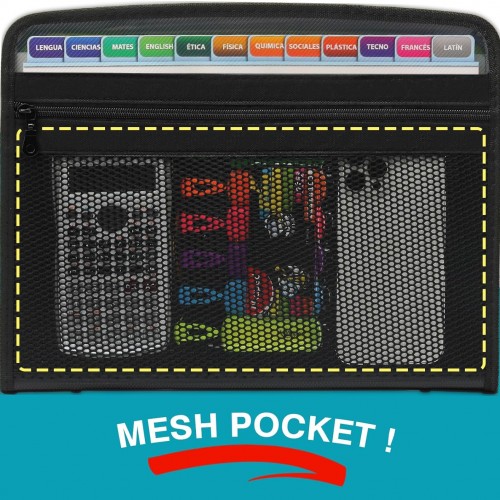 H4D Zippered Accordion File Organizer with Front Mesh Pouch, 13 Pocket Expanding File Folder, Fit for Documents Letter Size A4 Papers, Clear