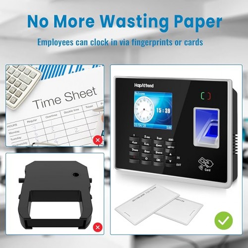 Time Clocks for Employees Small Business Automatic Calculate Hours, 0 Monthly Fees Fingerprint Time Clock, H3 Standalone Biometric Clock in Machine for Employees with 5 RFID Cards
