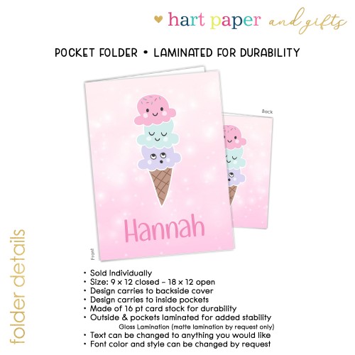 Ice Cream Personalized Custom 2-Pocket Folder • School Office Supplies 1 – 2Pocket Folder