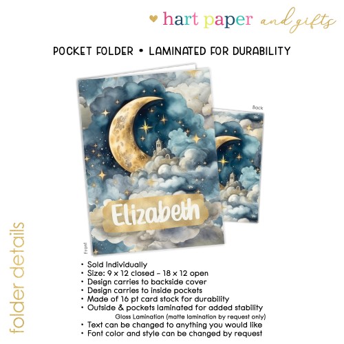 Moon Stars Personalized Custom 2-Pocket Folder • School Office Supplies 1 – 2Pocket Folder