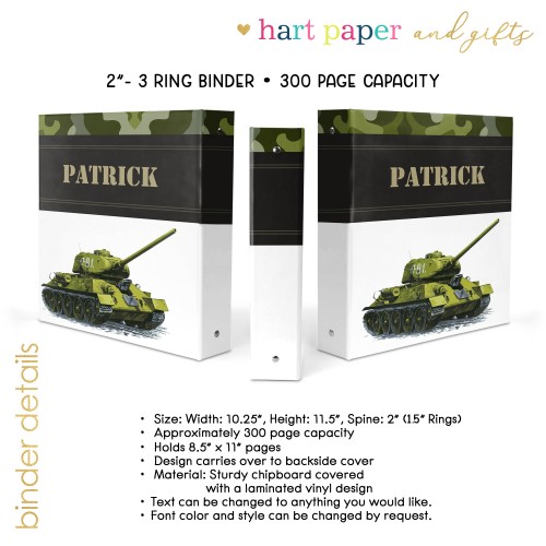 Army Tank Military Personalized Custom 2-Pocket Folder • School Office Supplies 1 – 2Pocket Folder