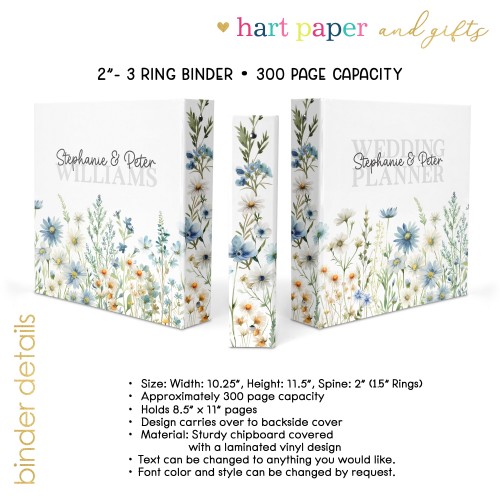 Wildflower Arch Wedding Bridal Personalized Custom 2″ 3 Ring Binder • School Office Supplies