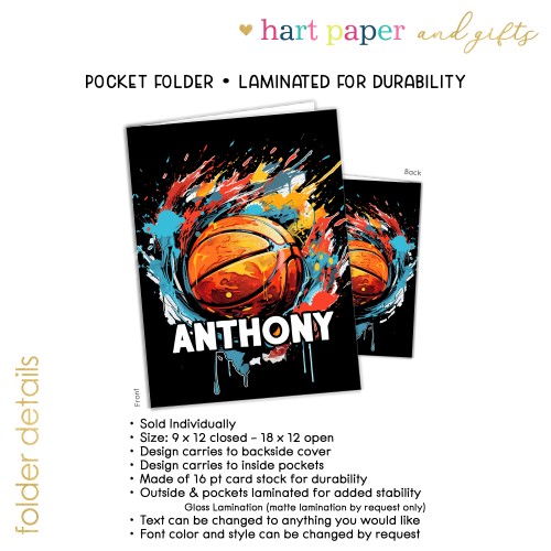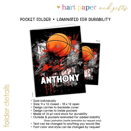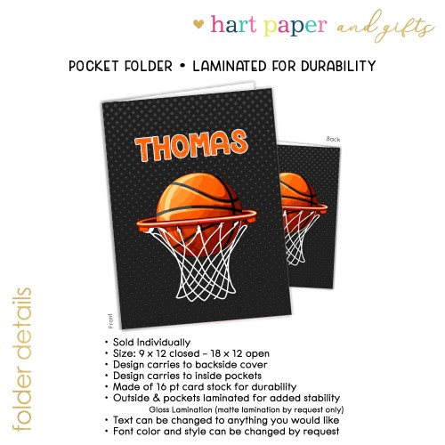 Basketball Personalized Custom 2-Pocket Folder • School Office Supplies 1 – 2Pocket Folder