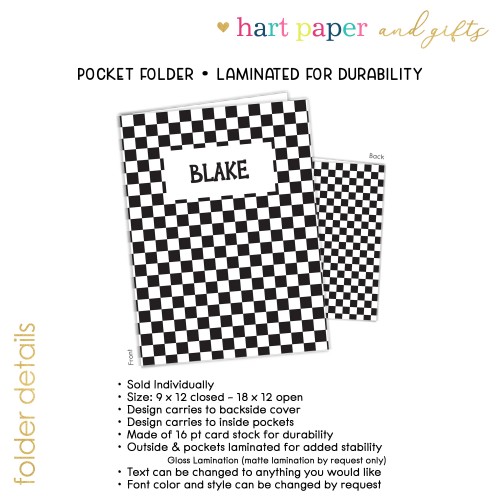 Black White Checks Personalized Custom 2-Pocket Folder • School Office Supplies 1 – 2Pocket Folder