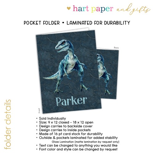 Blue Dinosaur Dino Personalized Custom 2-Pocket Folder • School Office Supplies 1 – 2Pocket Folder