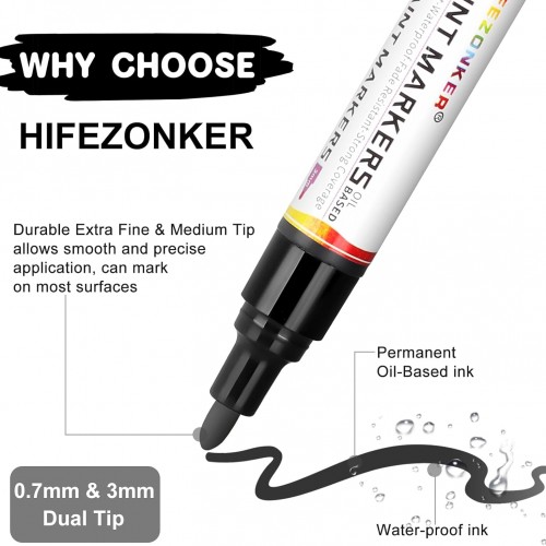 White Paint Pen Marker – 2 PCS Dual Tip Oil Based Permanent Markers, Extra Fine and Medium Tip (0.7mm & 3mm), Quick Drying, Waterproof, for Fabric