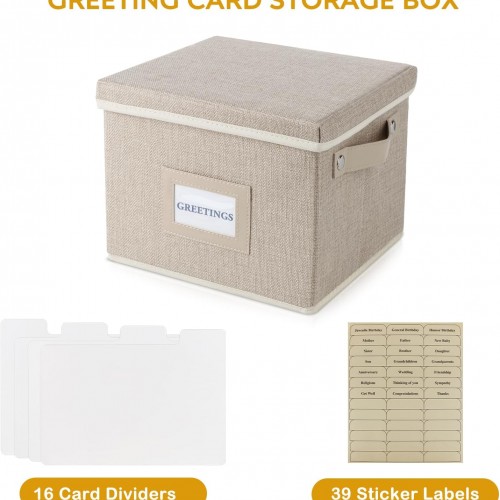 Greeting Card Organizer Box with 16 Dividers,Collapsible Greeting Card Storage Box with Handles Hold 150+ Cards,Greeting Card Holder for Greeting Cards,Sticker, Recipes, Photo, Envelope (Beige, 1 pcs)