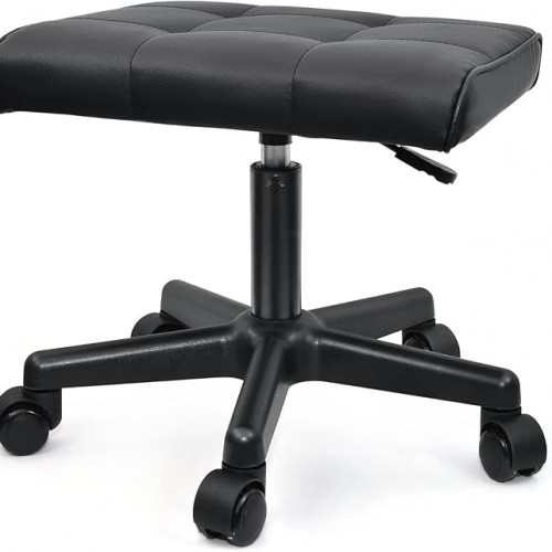 Footrest Under Desk Leg Rest Ottoman Adjustable Height Foot Stool with Wheels Leather Footrest