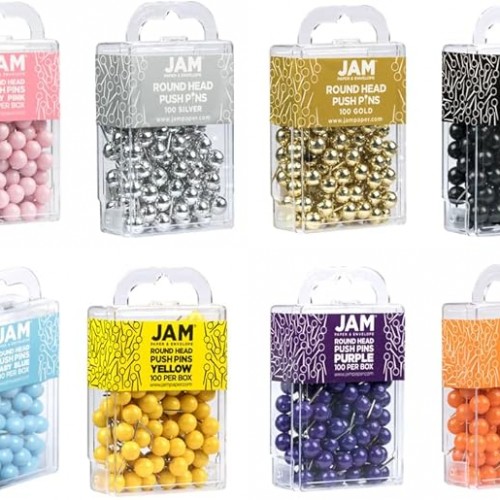 JAM PAPER Colorful Push Pins – Round Head Thumb Tacks – Assorted Color Pushpins – 8 Packs of 100