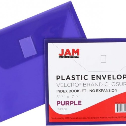 JAM PAPER Plastic Envelopes with Hook & Loop Closure – Index – 5 1/2 x 7 1/2 – Purple – 12/Pack