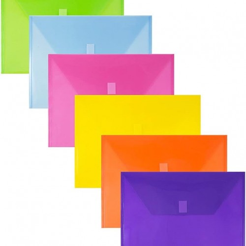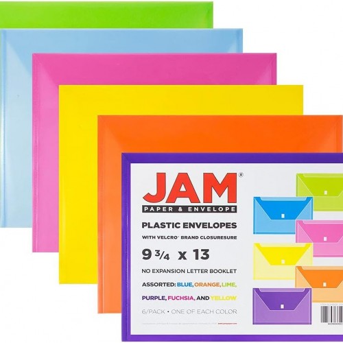 JAM PAPER Plastic Envelopes with Hook & Loop Closure – Letter Booklet – 9 3/4 x 13 – Clear – 12/Pack